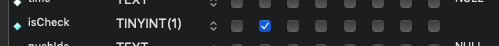 위에 코드를 입력하고 isCheck = true, isCheck = false 를 저장해보니, 아래 사진처럼 MySQL 테이블 필드 설정은 TINYINT(1)로 변경되어있는것을 확인했다.